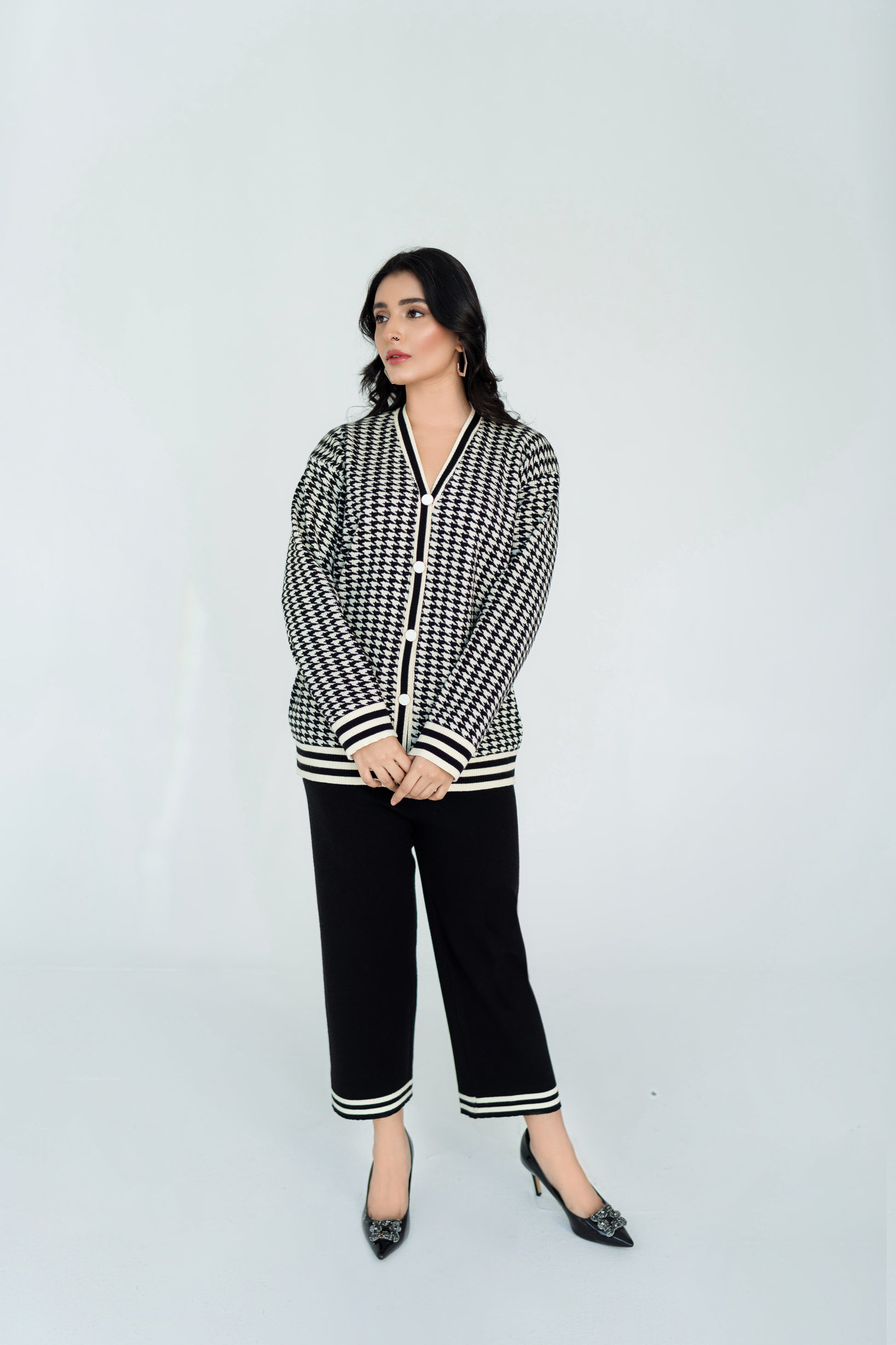 Houndstooth printed cardigan with matching pants