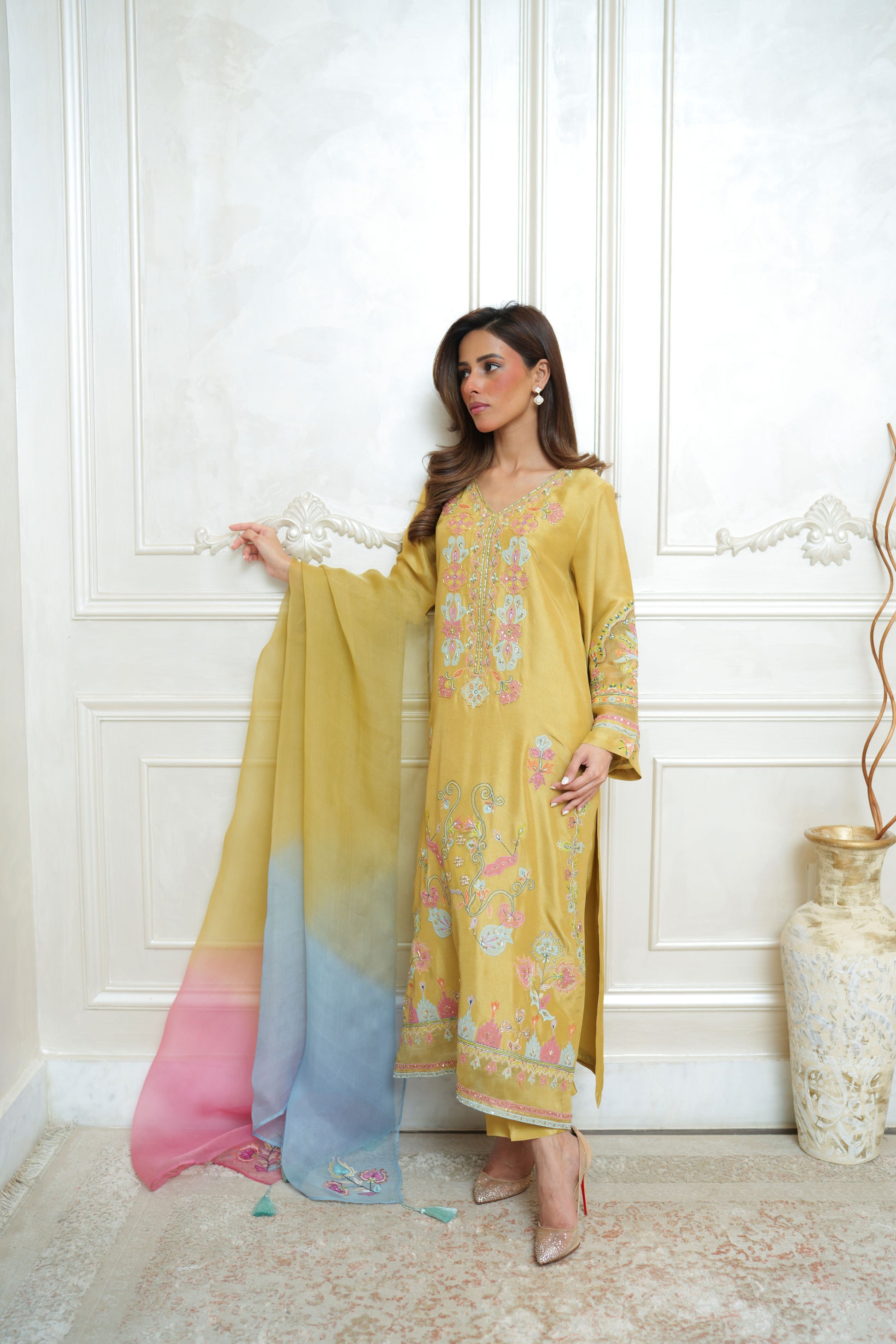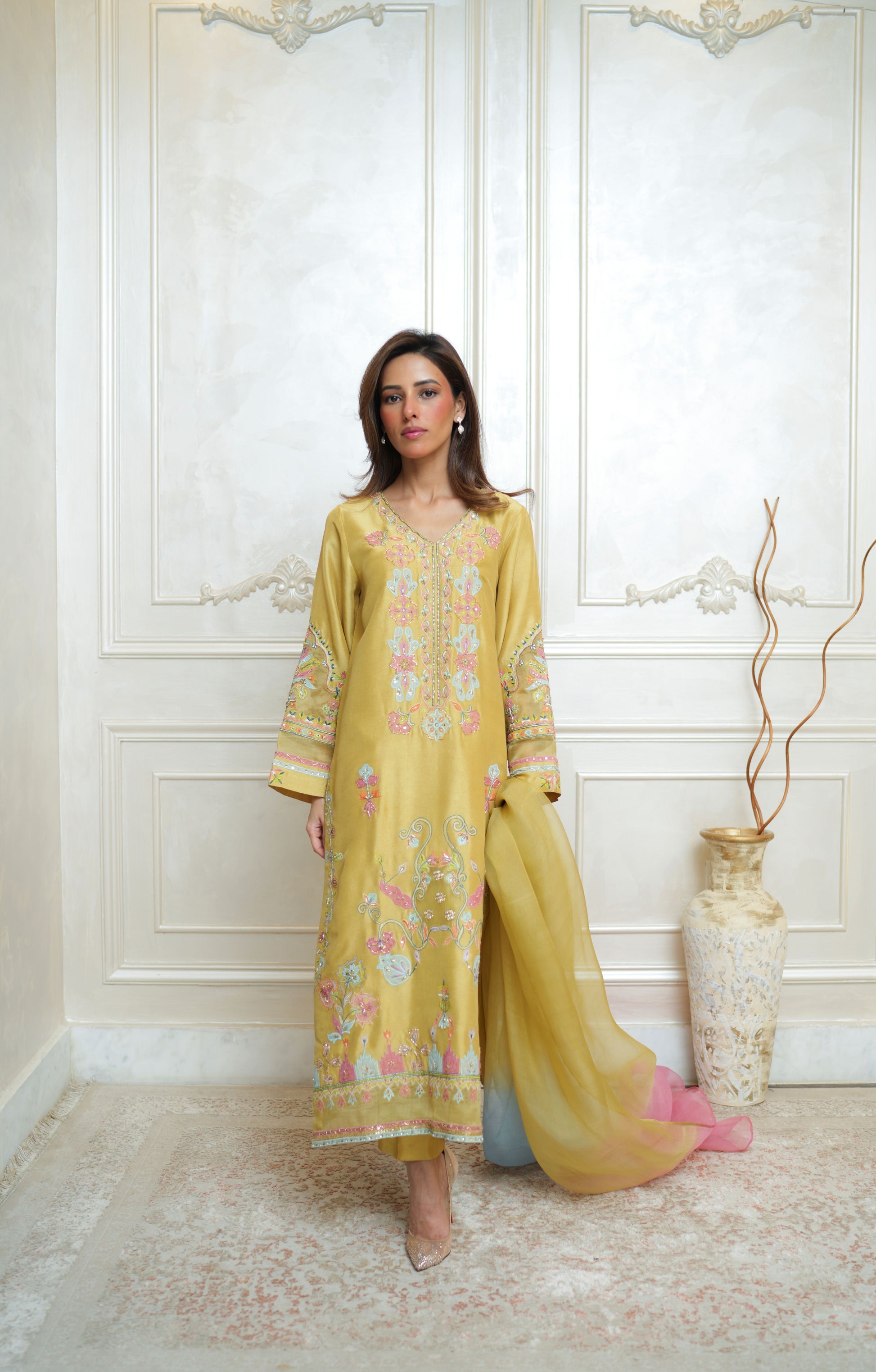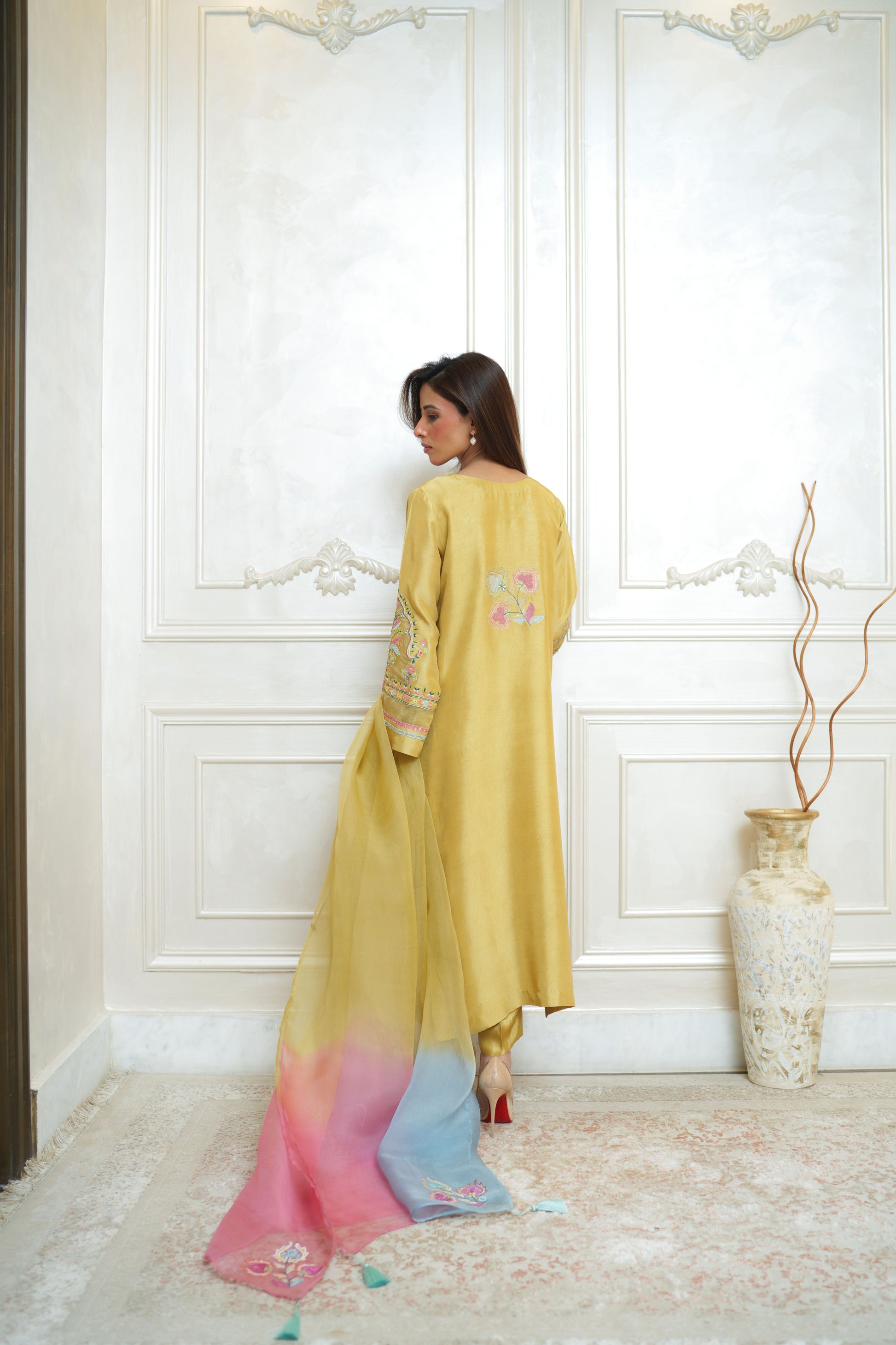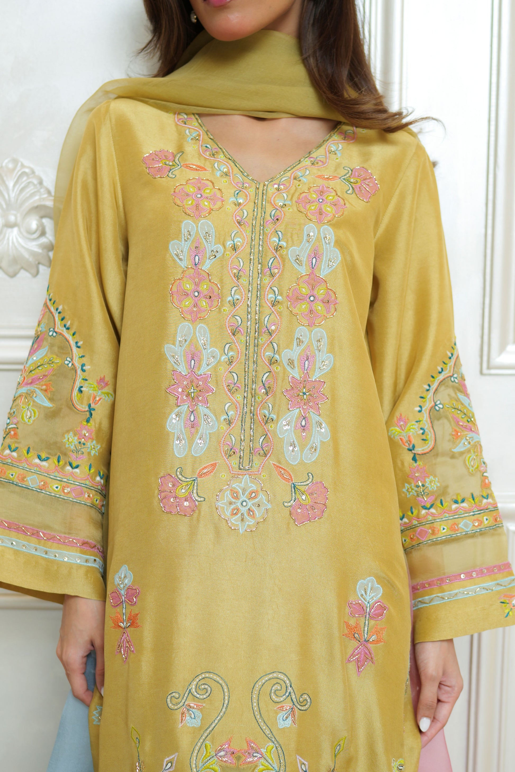 -Patch work embroidery with handworked sequences, stones and nakshi